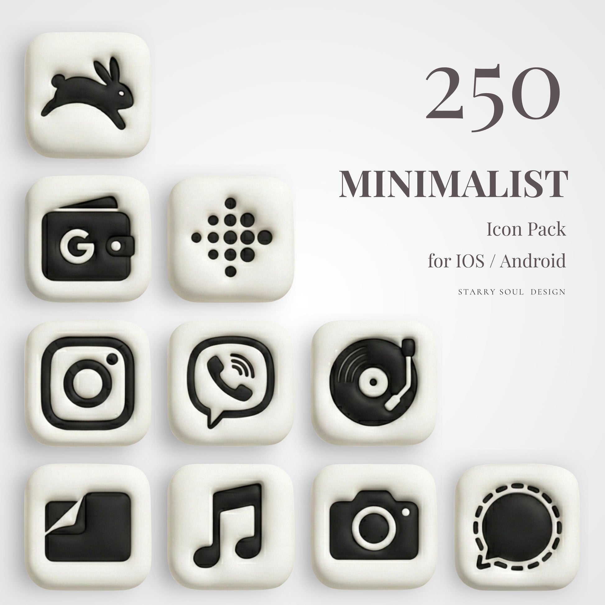 This set features rounded, pillowy icons with bold black symbols, creating a timeless minimalist look that feels warm, modern, and uncluttered. Perfect for anyone who loves neutral tones, clean design, and effortless elegance.