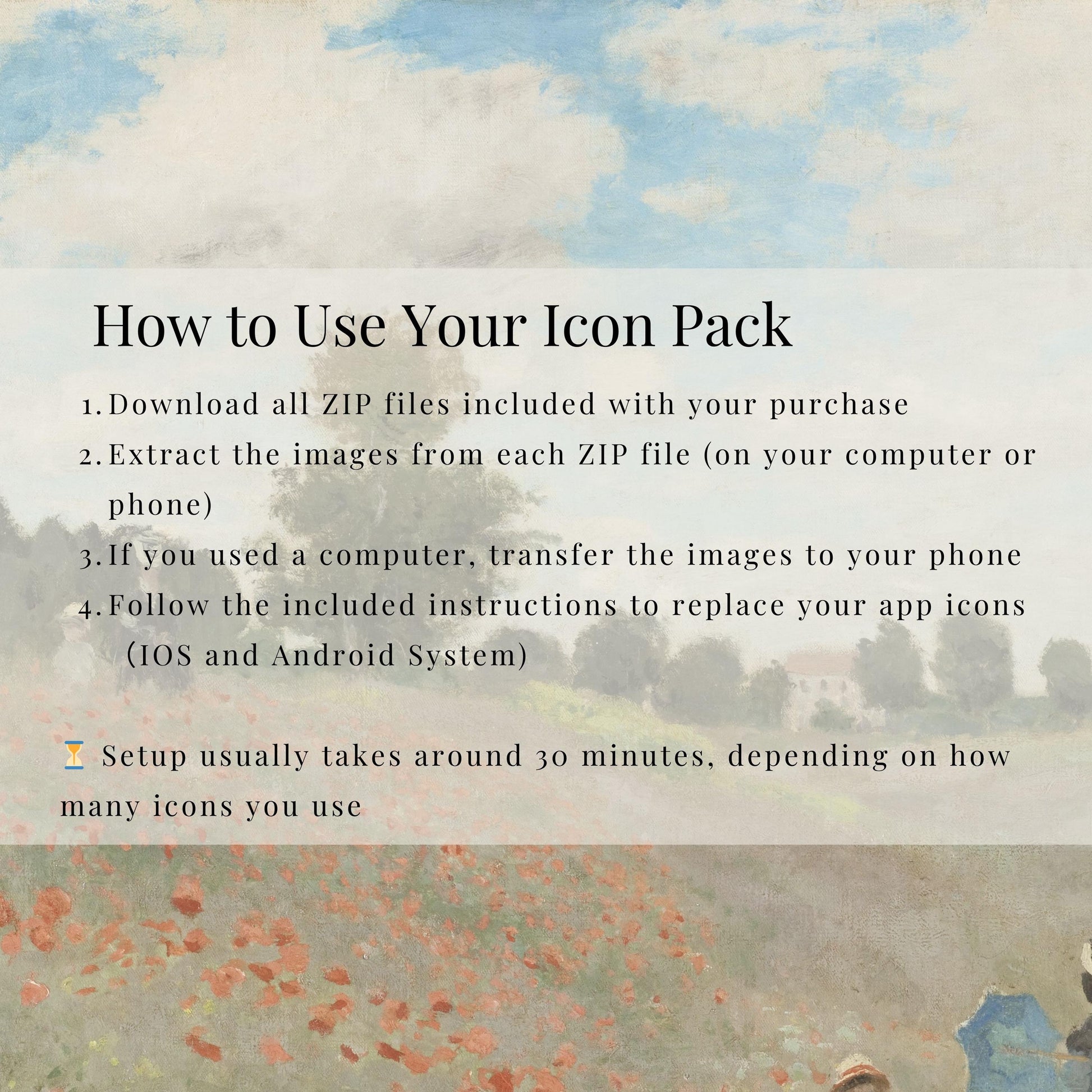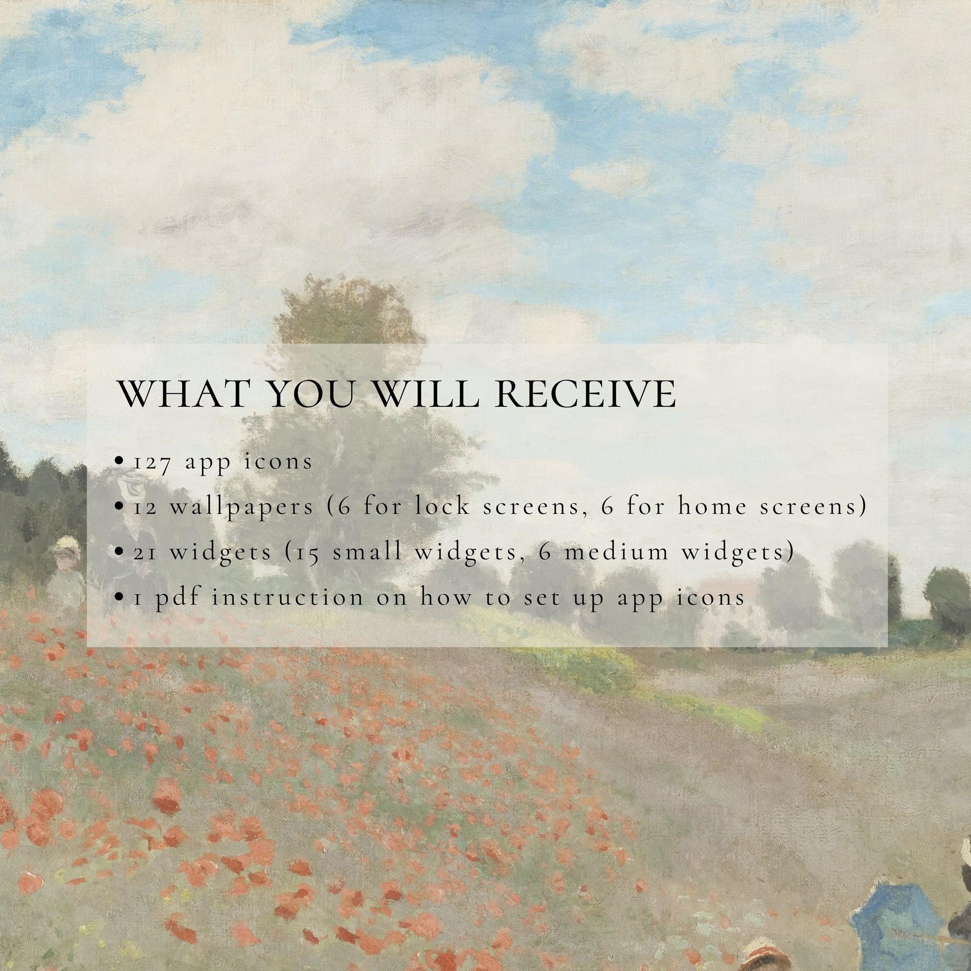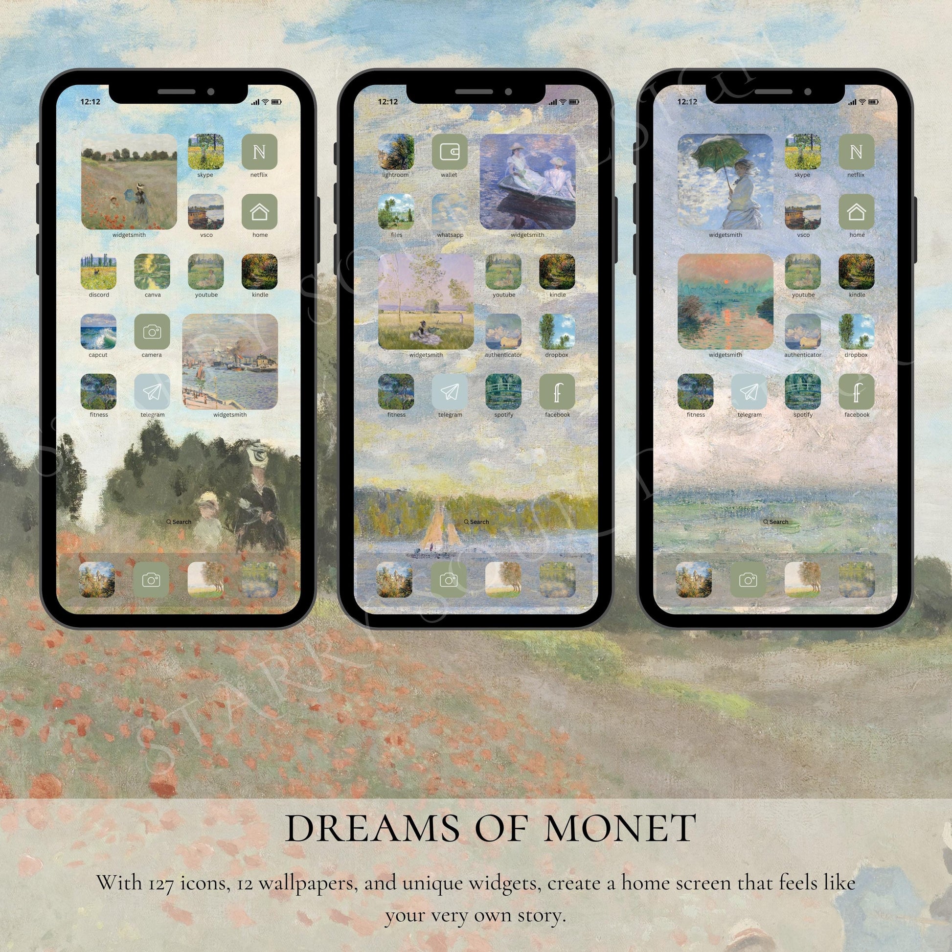 Transform your iPhone into a peaceful canvas with this Monet-inspired iOS theme pack. Featuring 127 custom app icons, 12 dreamy wallpapers, and unique widgets, each element reflects the soft brushstrokes, sunlight, and impressionistic beauty of Claude Monet’s paintings.