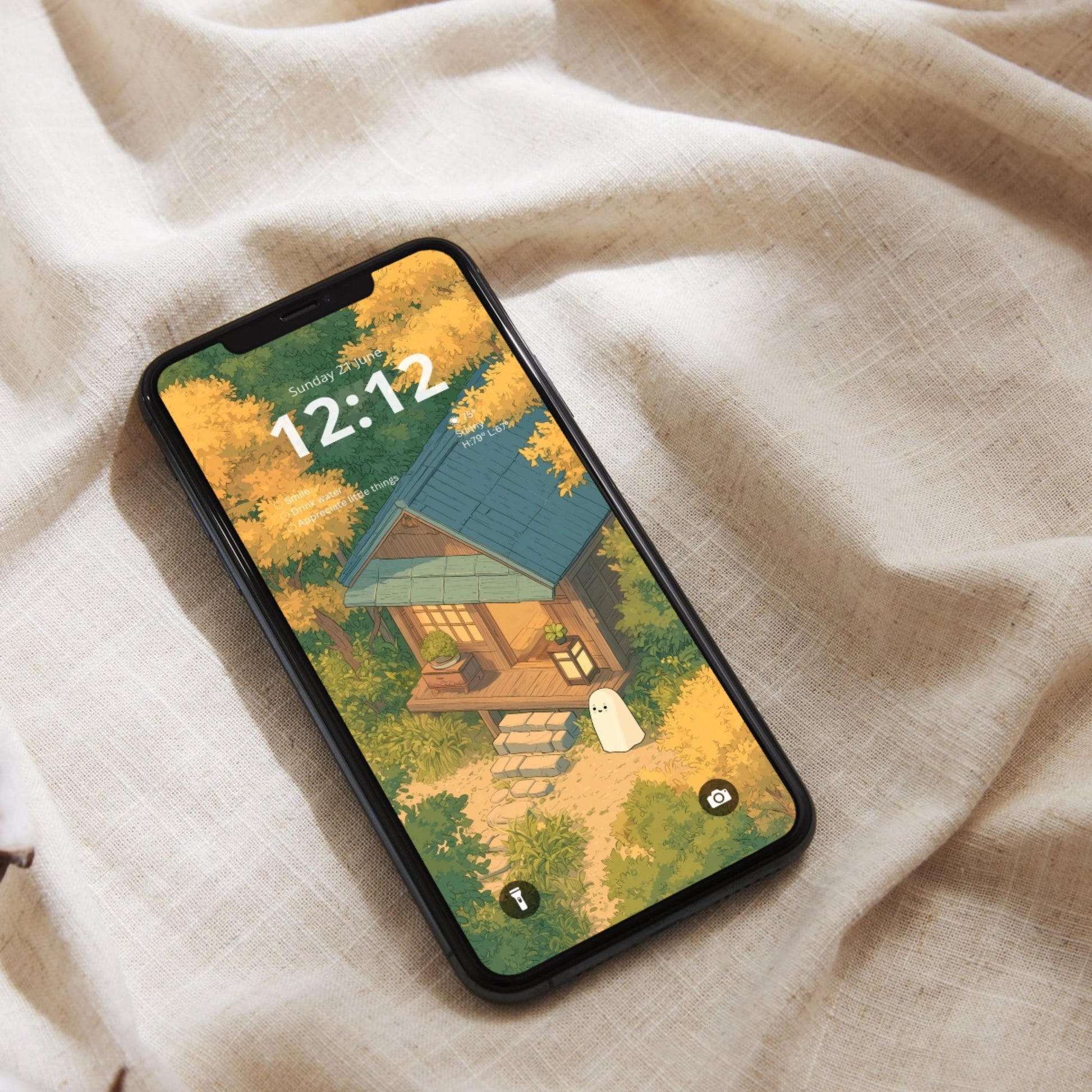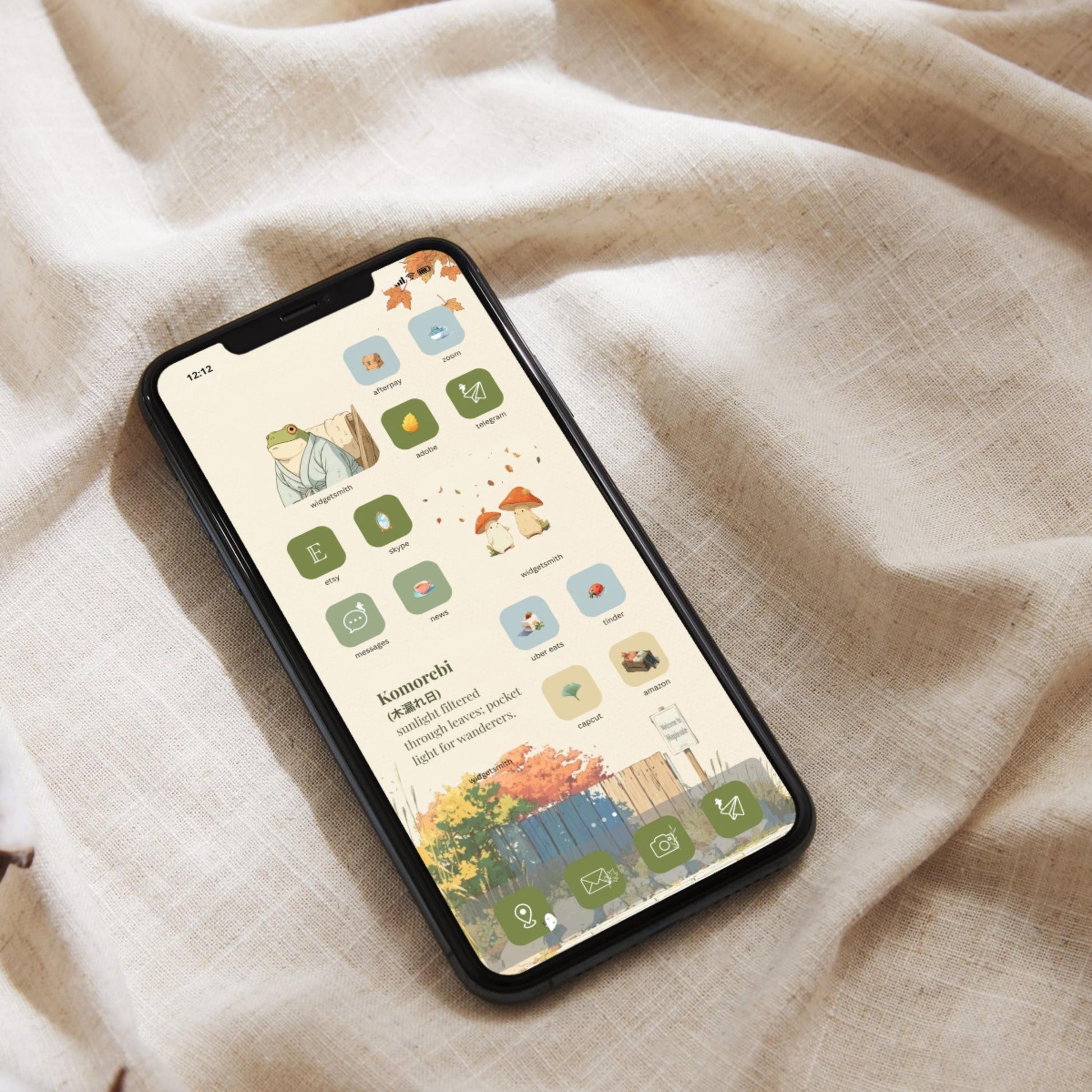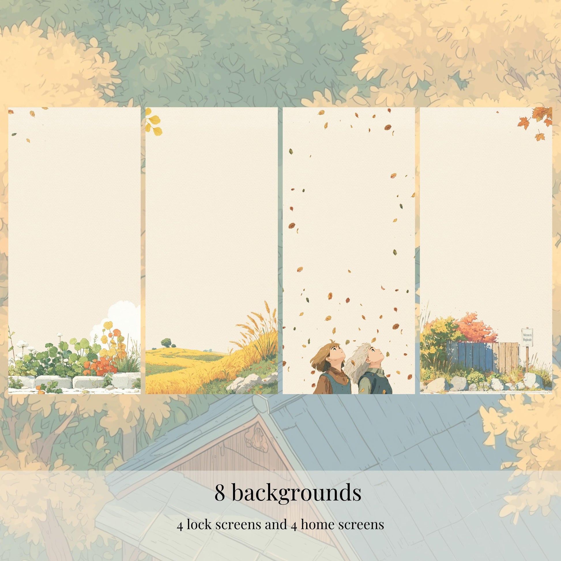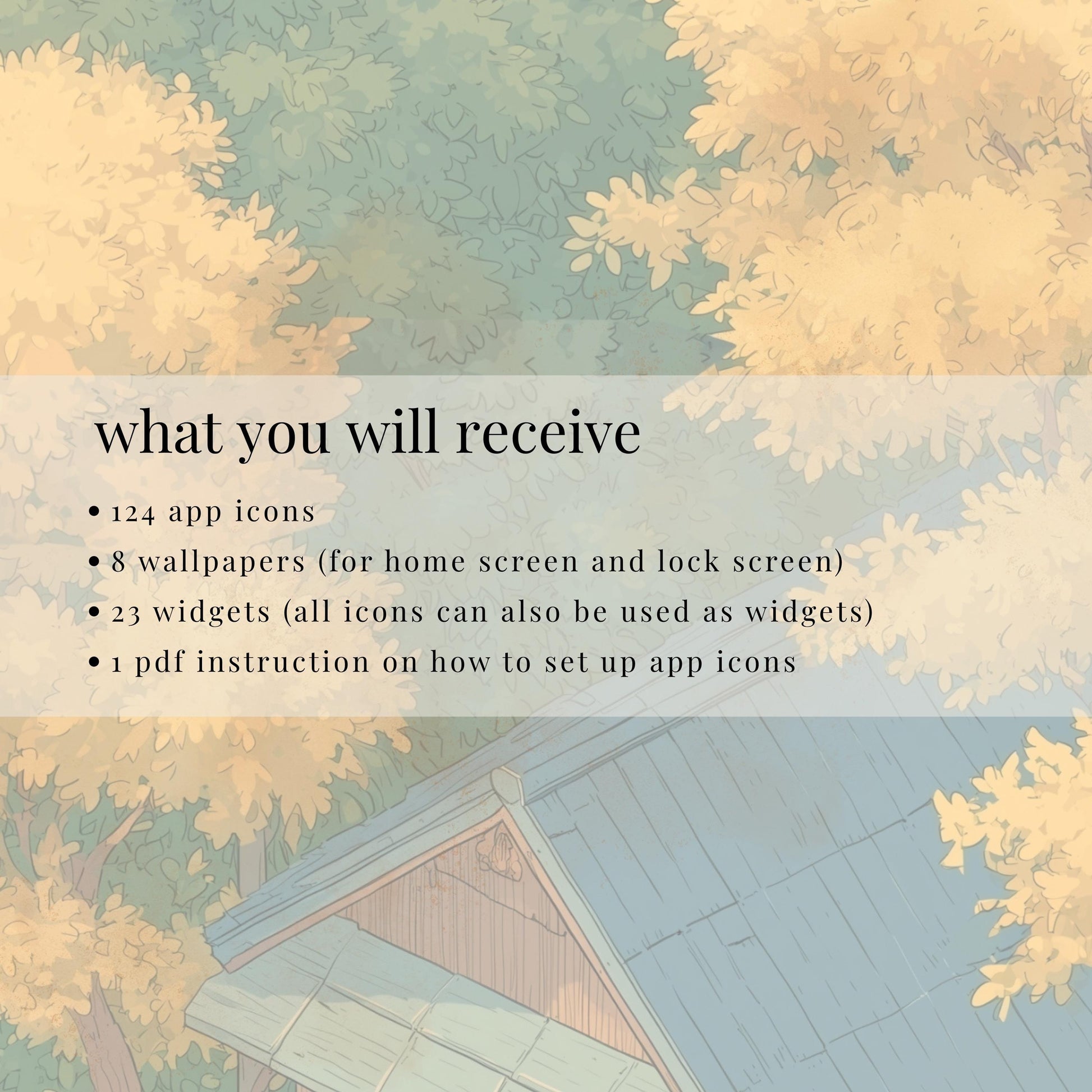 āØa cute, cozy anime icon pack inspired by Studio Ghibli vibes. A friendly monster village in autumn, lanterns at dusk, tea steam, maple leaves, and a hint of Halloween magic. Minimal watercolor icons on pure white backgrounds keep your home screen clean and elegant while still feeling whimsical and adventurous.